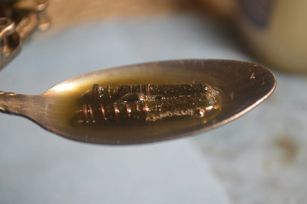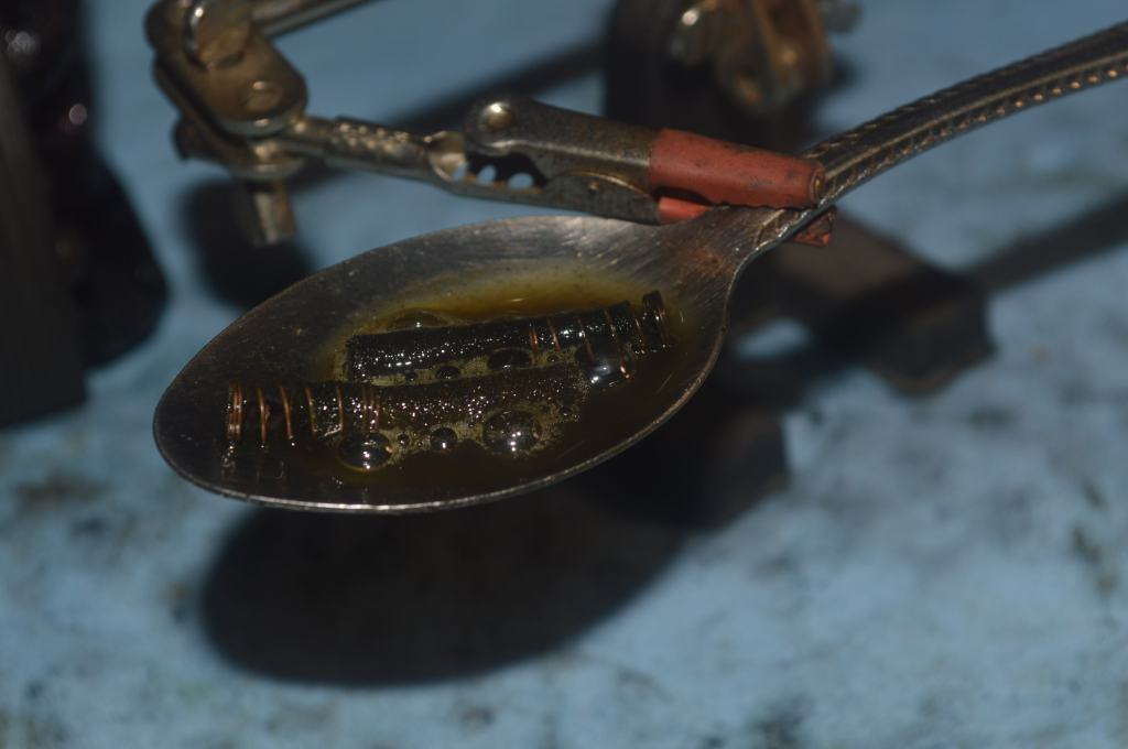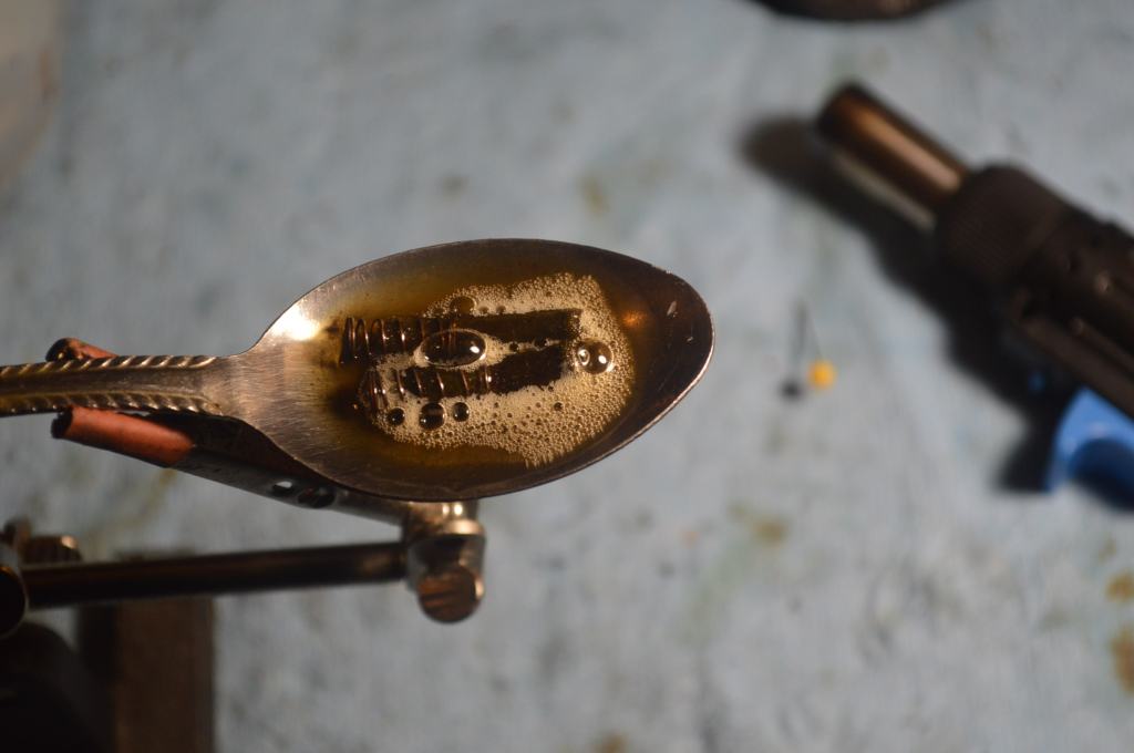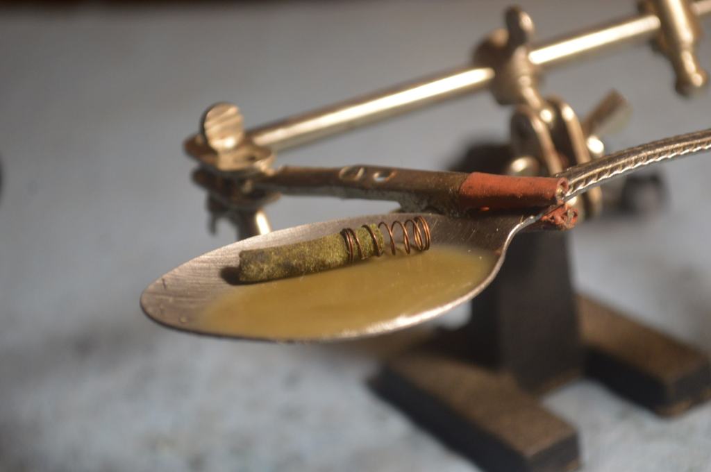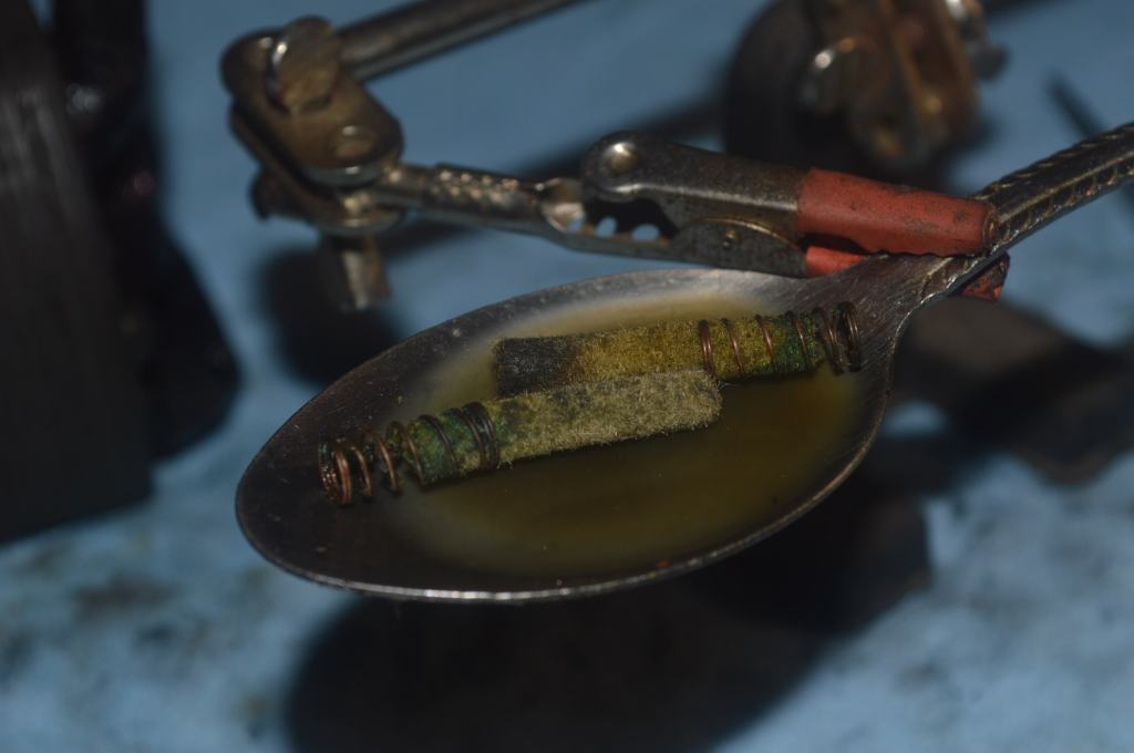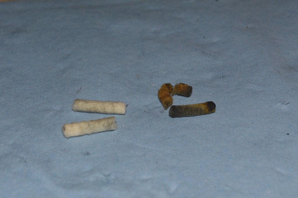 The parts are ultrasonically cleaned, heated in oil to 250 degrees to drive off water, and then each piece is wire brushed to shiny steel.