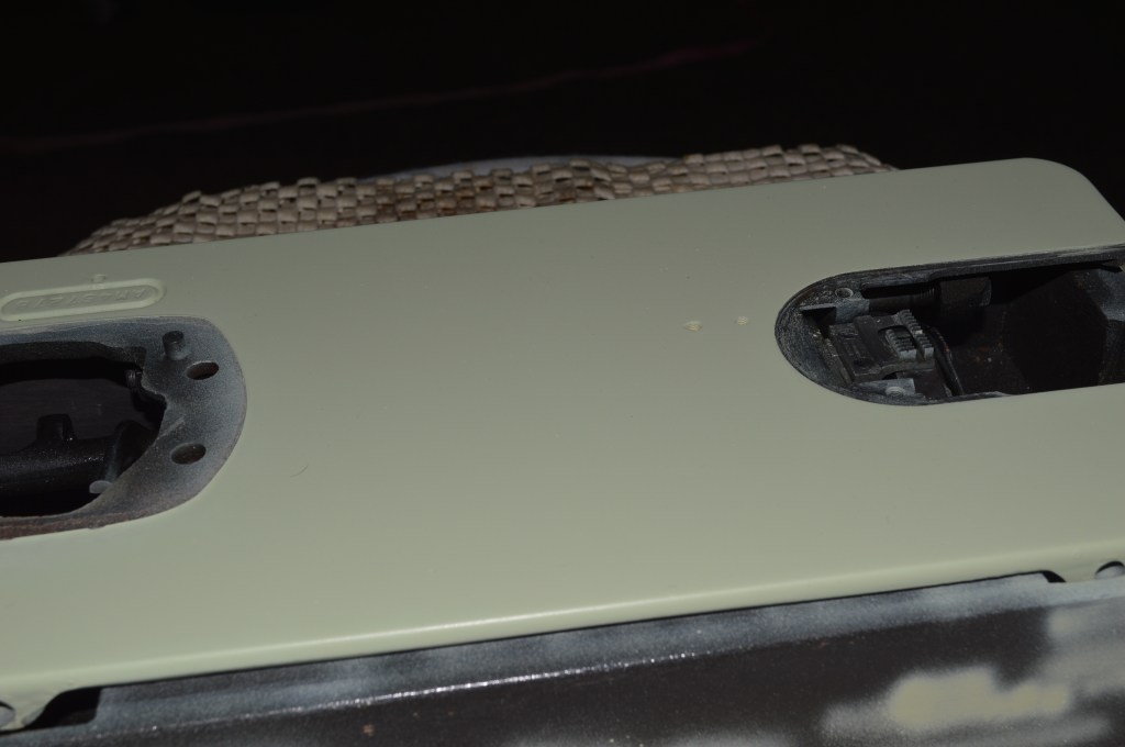 The bed chips are deep and go thru to the metal. The paint thickness is relatively thick here, and because the paint match paint is formulated with shellac, which is relatively thin, it will need to be built up over successive applications. Each application will need to dry before the next application. Instead of seperating the cosmetic from the mechanical restoration, it will be done in steps that are done concurrently. First, the machine is disassembled to the greatest extent possible.
