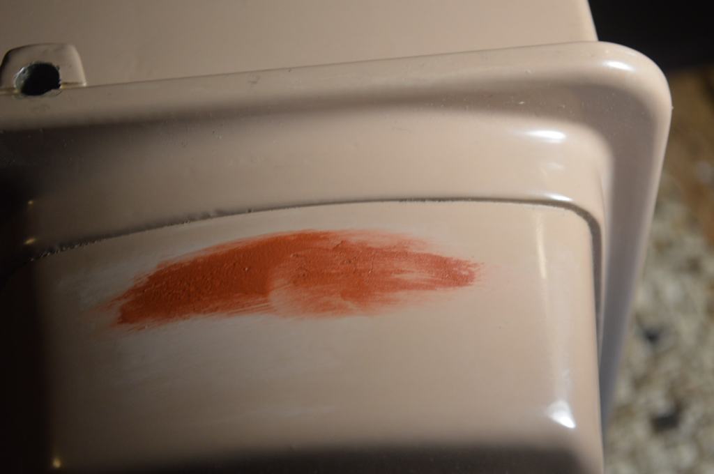 While all of this has been going on, I have been working on the paint repairs. The bed edge chips are easy. The scars and the large chips on the bed are not.