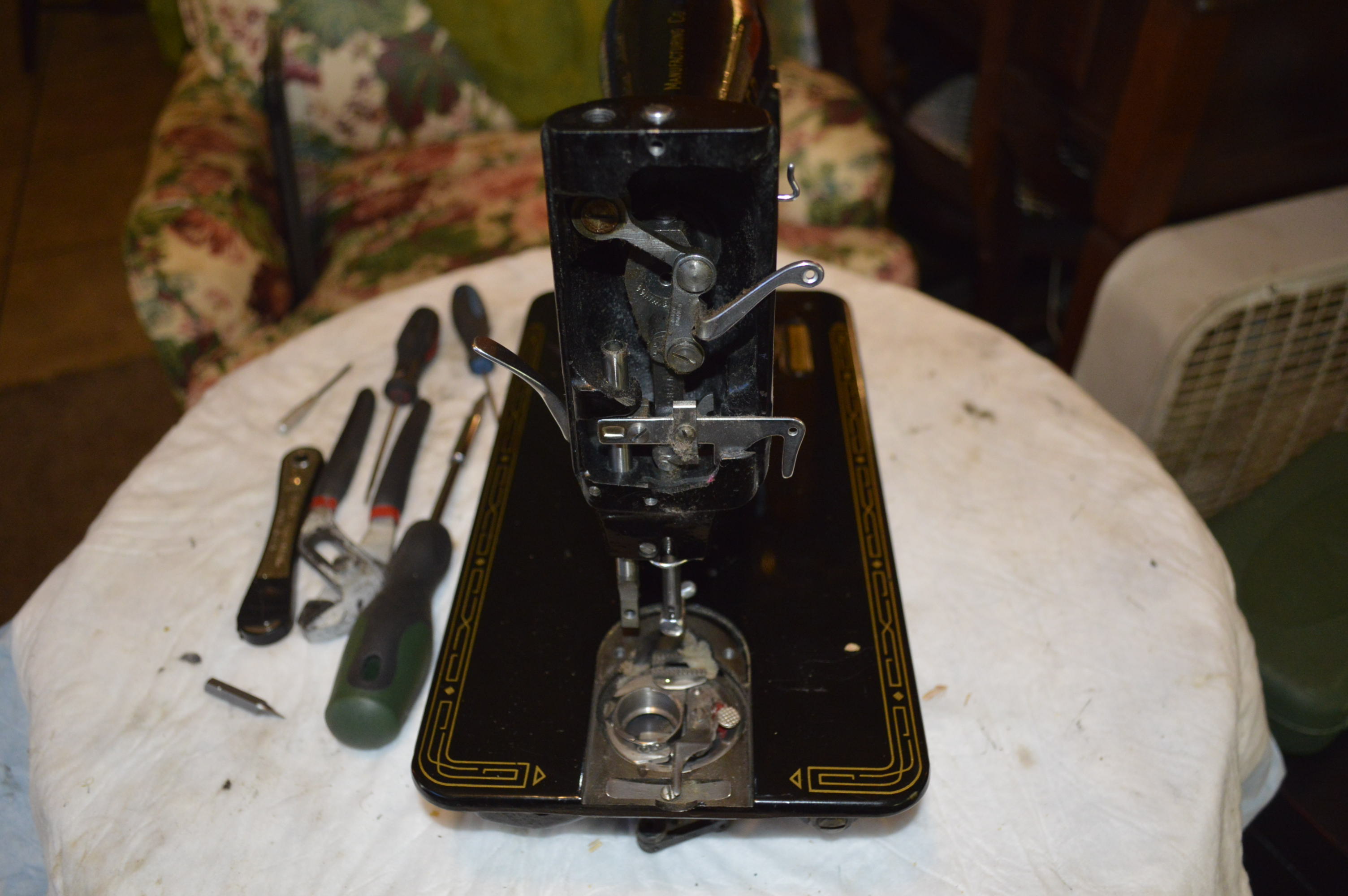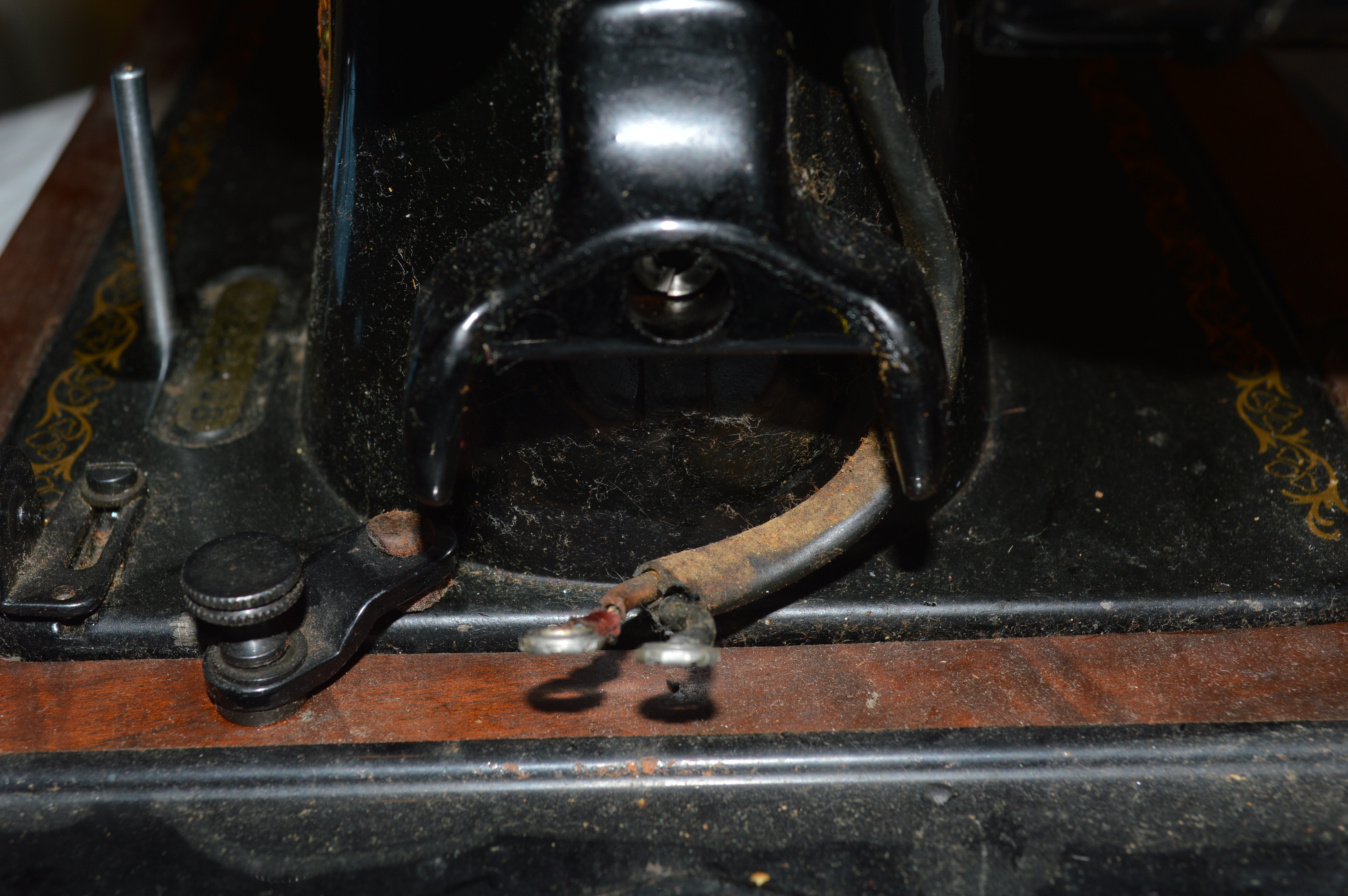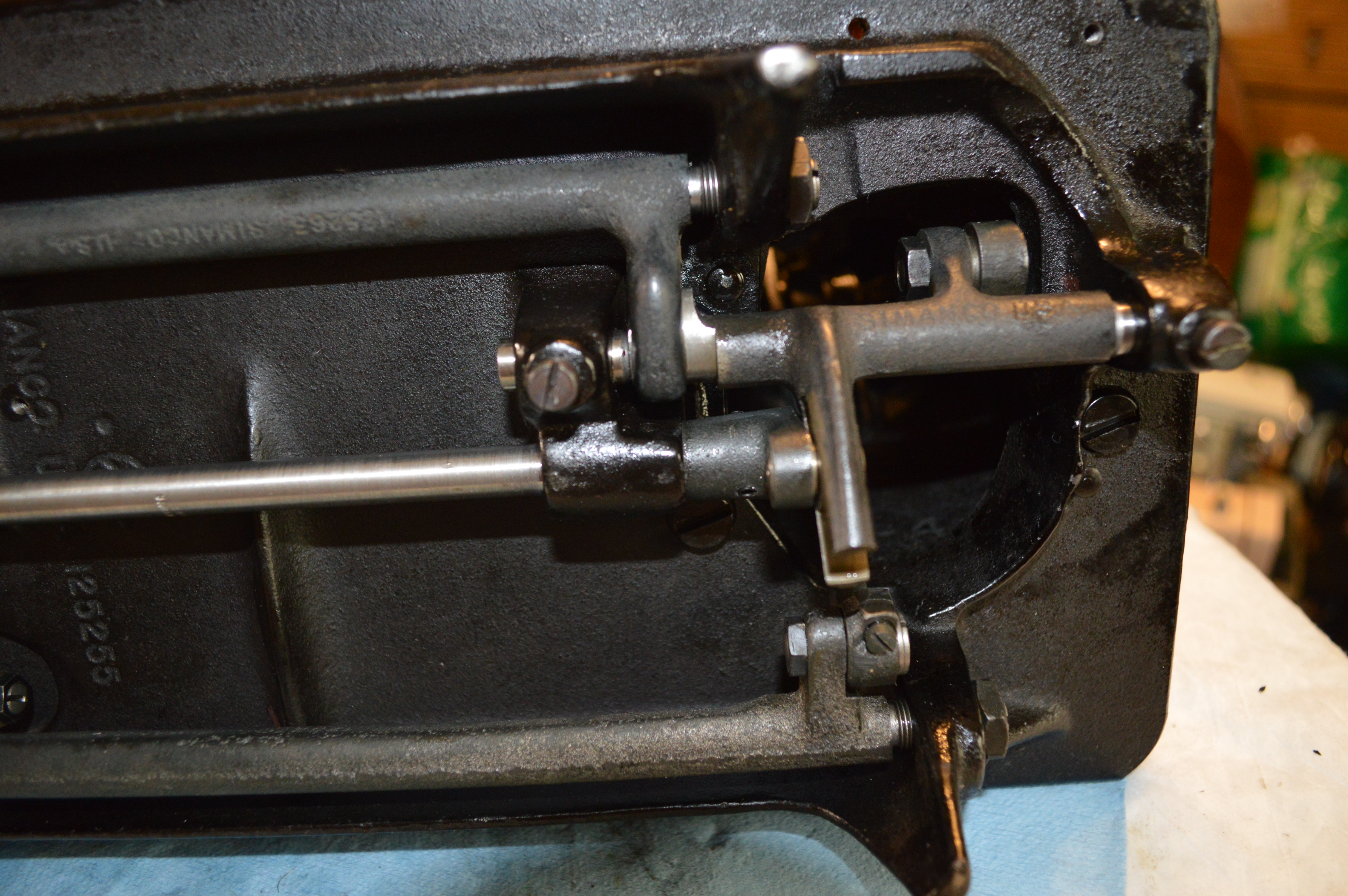 We currently have in our collection several 201-2 machines, One belonged to my Mother and was made in 1938. This machine was made in 1940, and the others were all made in the 1950’s. While I was disassembling the machine, I noticed some things that are different from all the others. This one has a pressed in needle bar assembly instead of the typical needle bar assembly where it is camped with a screw. Digging deeper into the machine I noticed that the presser foot spring had worn grooves into the presser foot bar. This can only happen from a tremendous amount of use. Showing these differences to my Wife, she said she believed it had been used by a home seamstress, possibly to support her family during hard times. Knowing that these machines were actually used by people during hard times to feed and cloth their families, this reinforced her desire to keep the machine and she said “Its mine… we are keeping this one”.