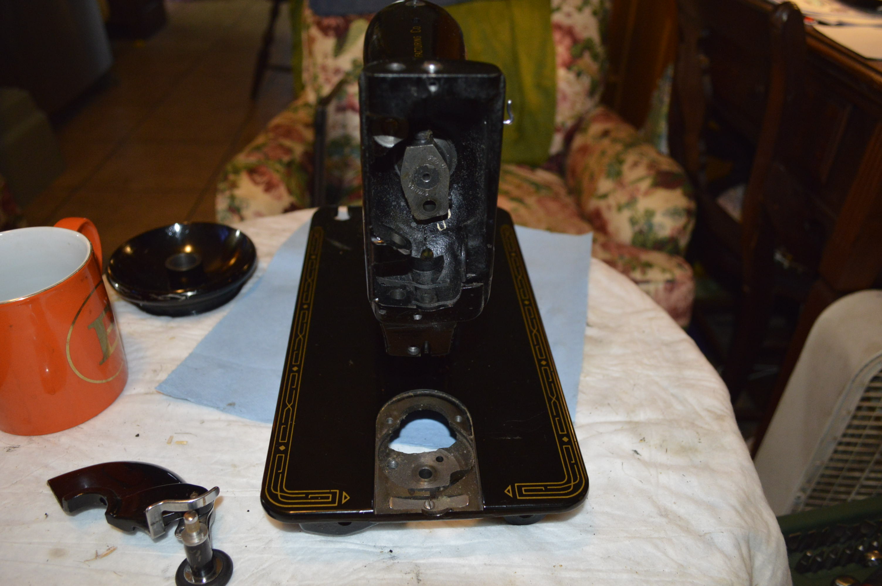 Starting to put all of the parts on and it is starting to resemble a snake shedding its skin… well, more like a Singer 201.