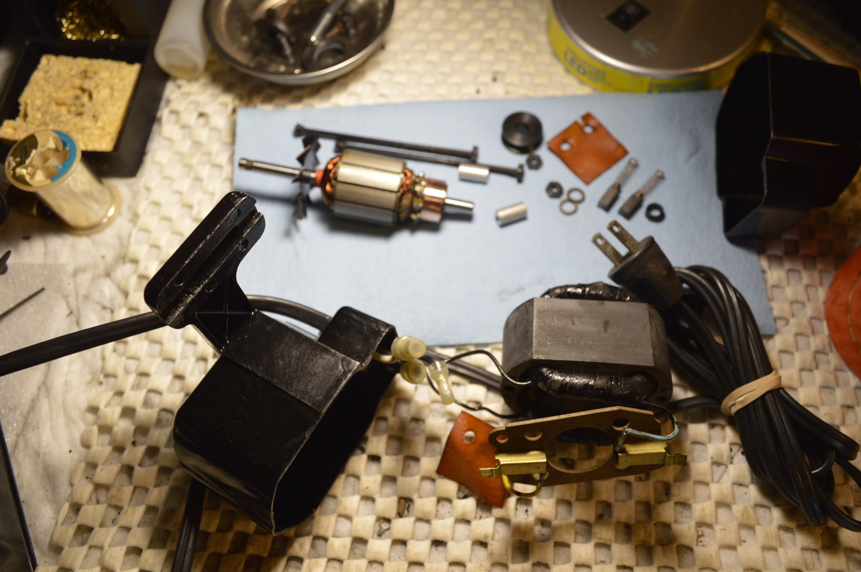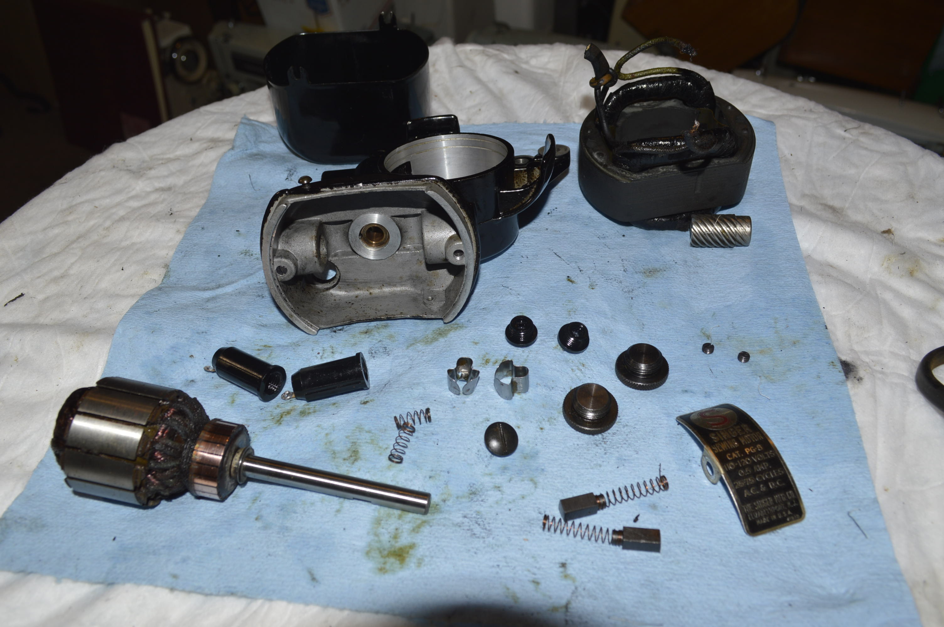 If you have followed the level of detail in this restoration, you can tell that details matter… Nothing done so far exceeds the detail needed to rebuild a Singer potted motor. They are exceptionally good motors and with the servicing we are doing, it will run great! The achilles heel on these motors is that the wires get brittle with age. I have not come across one of these motors yet that did not have to have the main (field coil) wires replaced. luckily, this is not particularly hard to do if you have ever used a soldering iron before, and there are detailed tutorials on the web to guide you step by step. Unfortunately, I can’t do that with this motor. I will show you what I had to do to get it back to running order! Preparation is the key to success, and here is how I proceeded with the service.