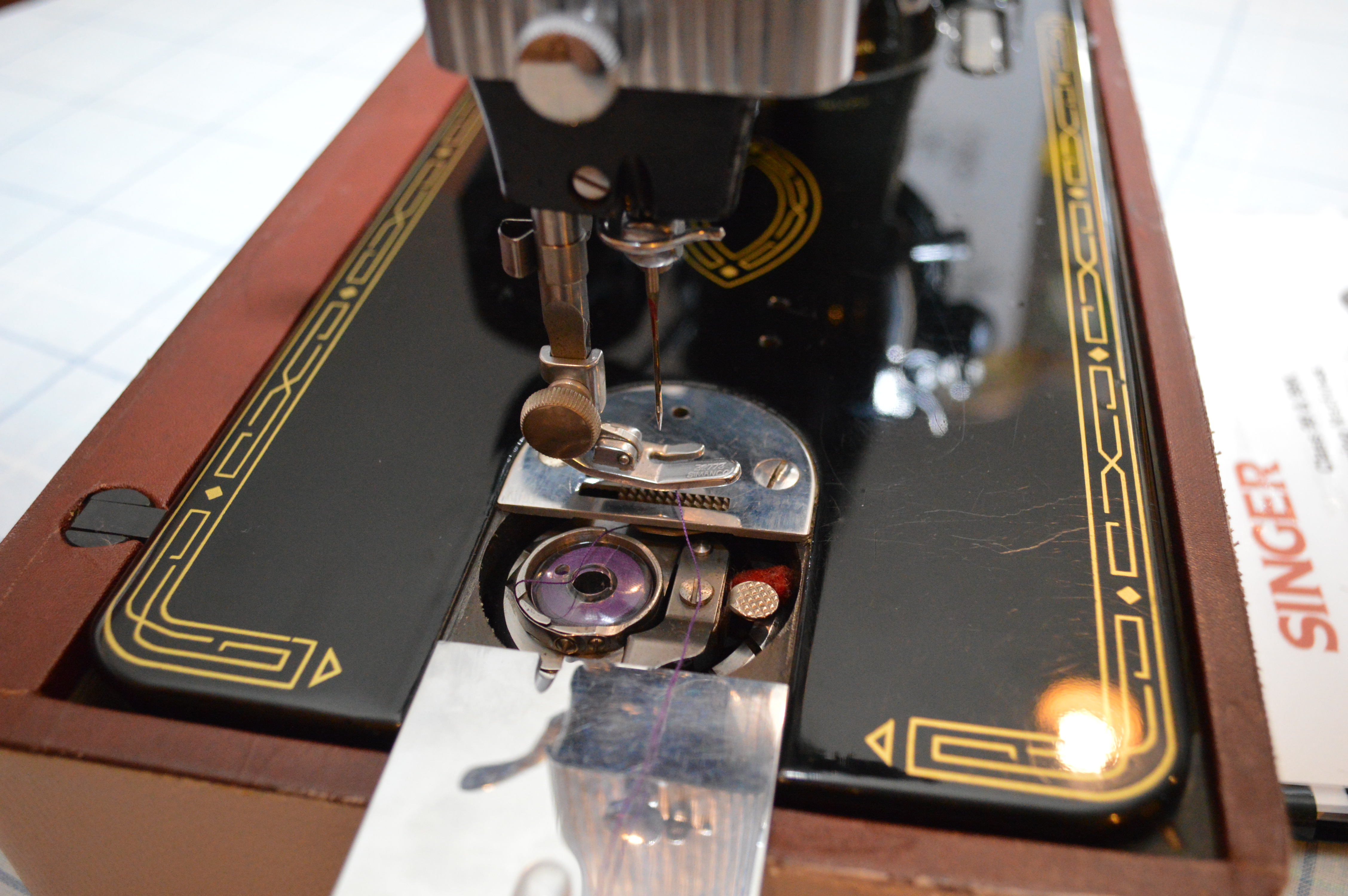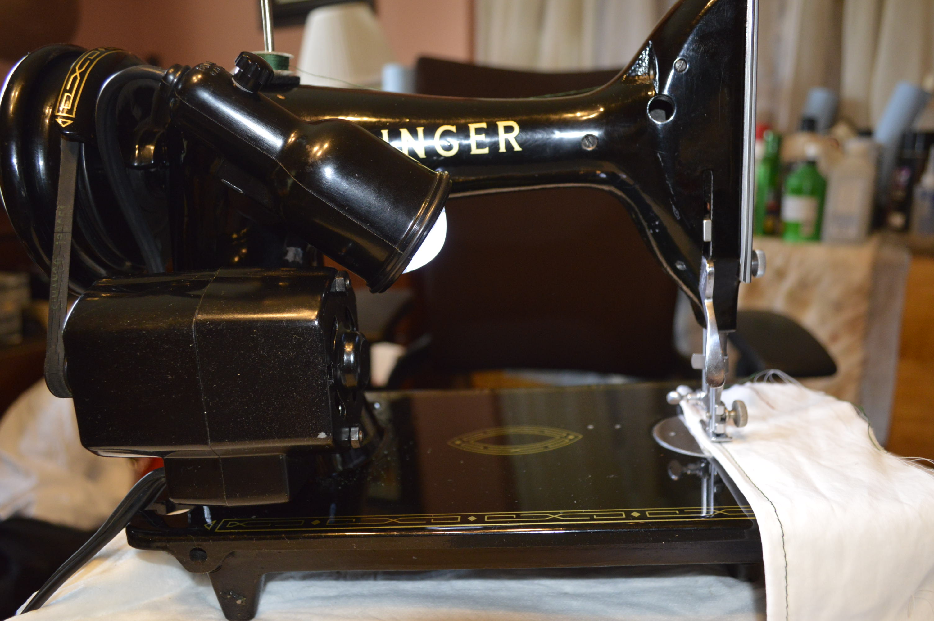 The next project is a Singer 15-91 sewing machine born on December 18, 1952. She shares her birthday with 49,999 sisters. If I had to guess, I would say that she was manufactured in Singer’s factory at the North Pole. I am of course kidding, but Singer did have factories all over the world. I can only imagine what a wonderful surprise she was to some lucky person to open on Christmas day!