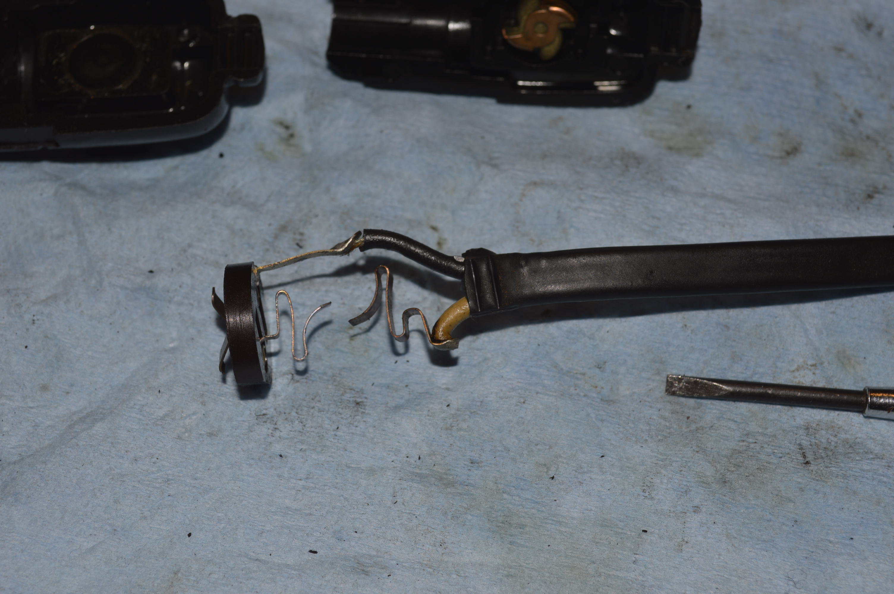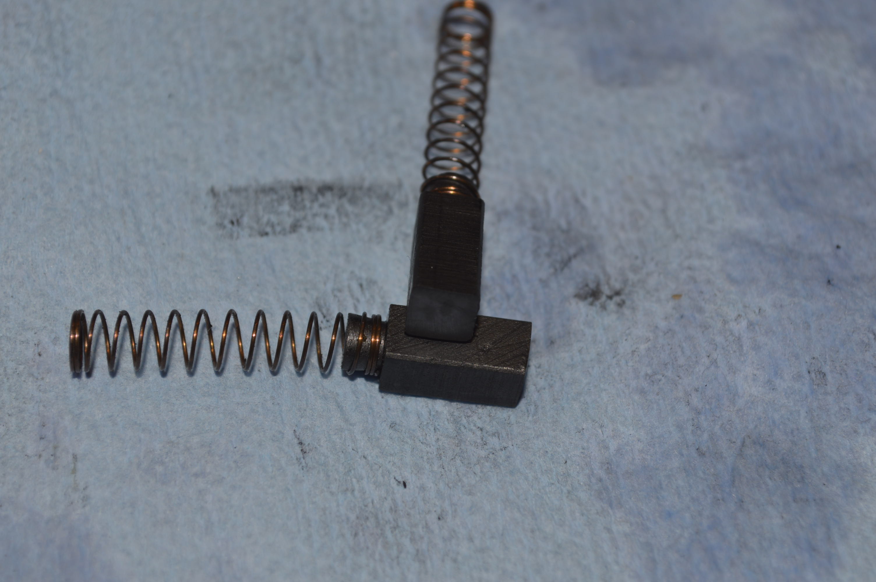 Remove the brush springs (hopefully with the brush attached). If the spring pops off of the brush leaving the brush still in the housing, don’t worry, you can push them thru after the armature is removed.