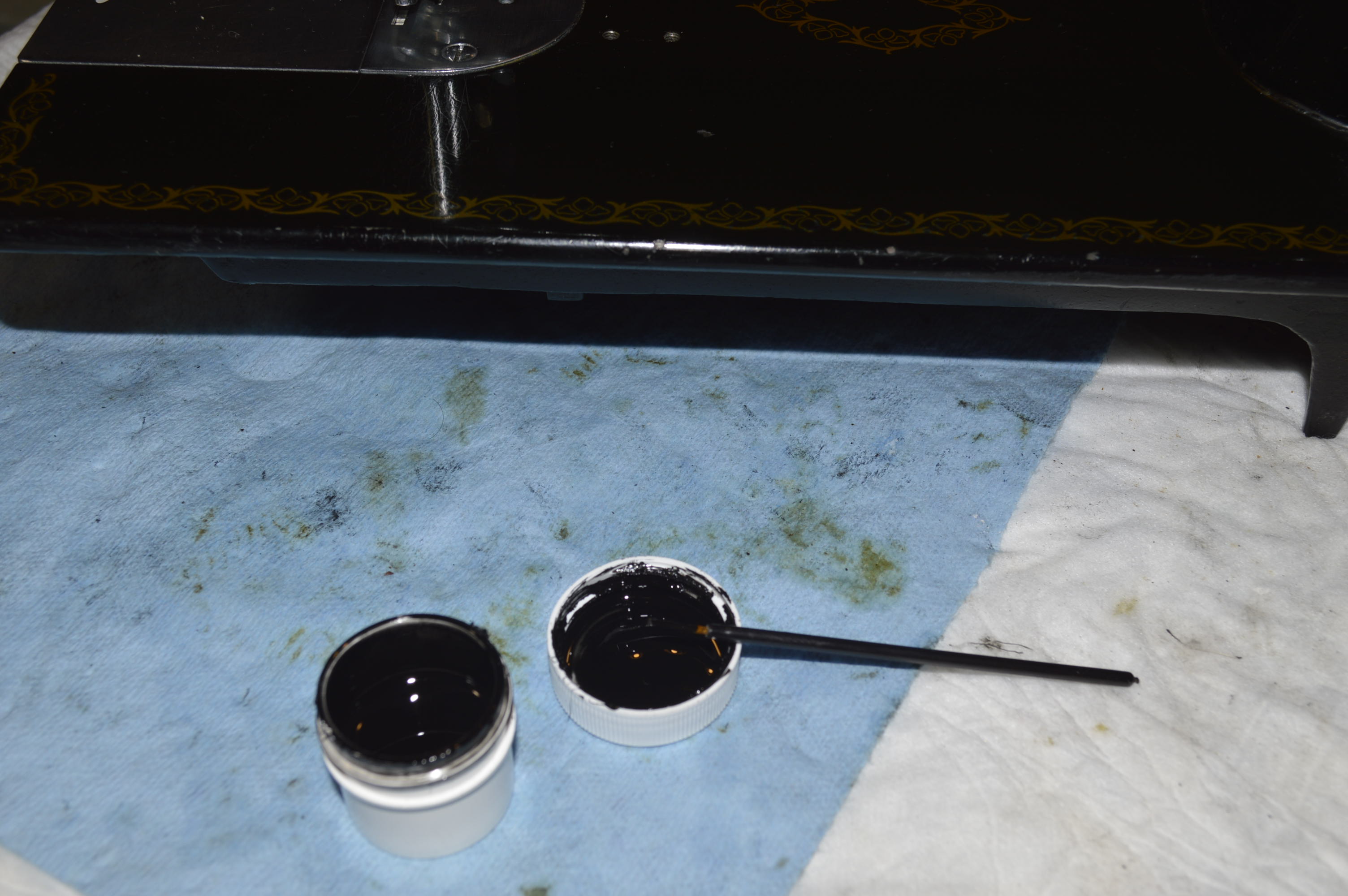 Now the machine is cleaned with sewing machine oil, The finish can be evaluated to see if it can be safely cleaned “deeper”. I have talked about this before, but I have yet shown the process in pictures… But first, just how black is a japanned finished Singer sewing machine? Look at these pictures and you will see why I ask.