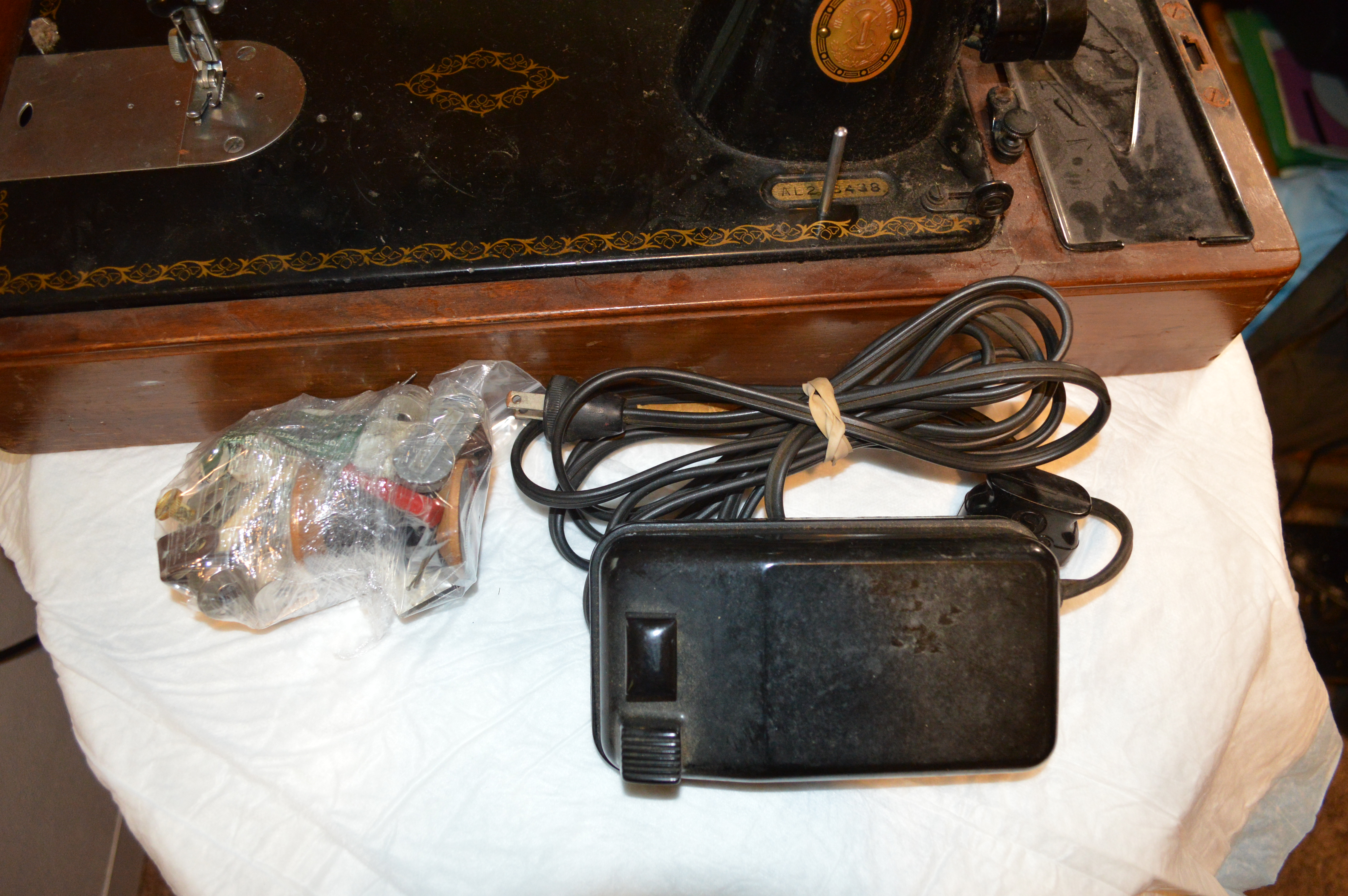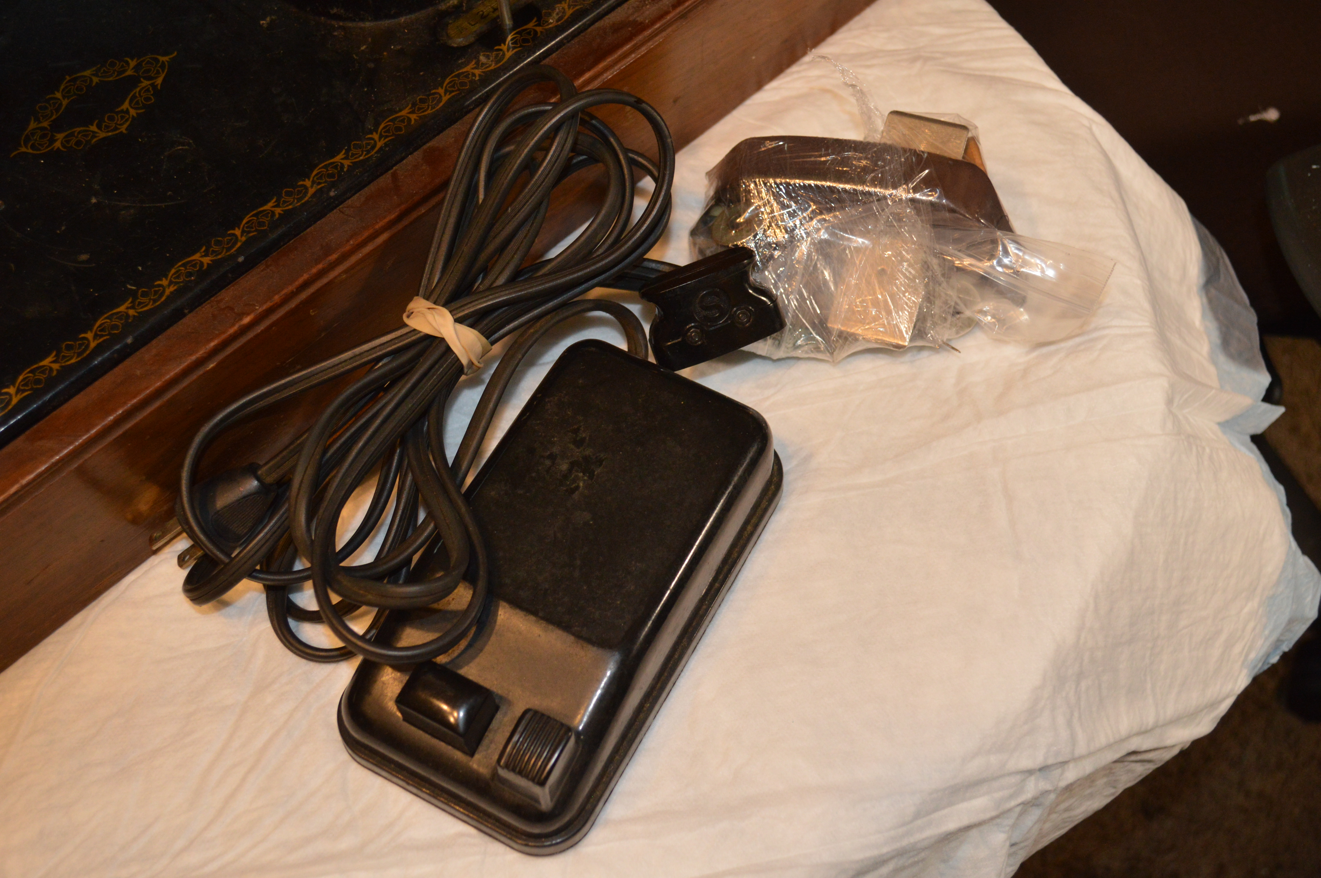 This 15-91 was delivered in a Bentwood case, a few bits and pieces wrapped up in a plastic baggie, and a Singer carbon pile foot controller.