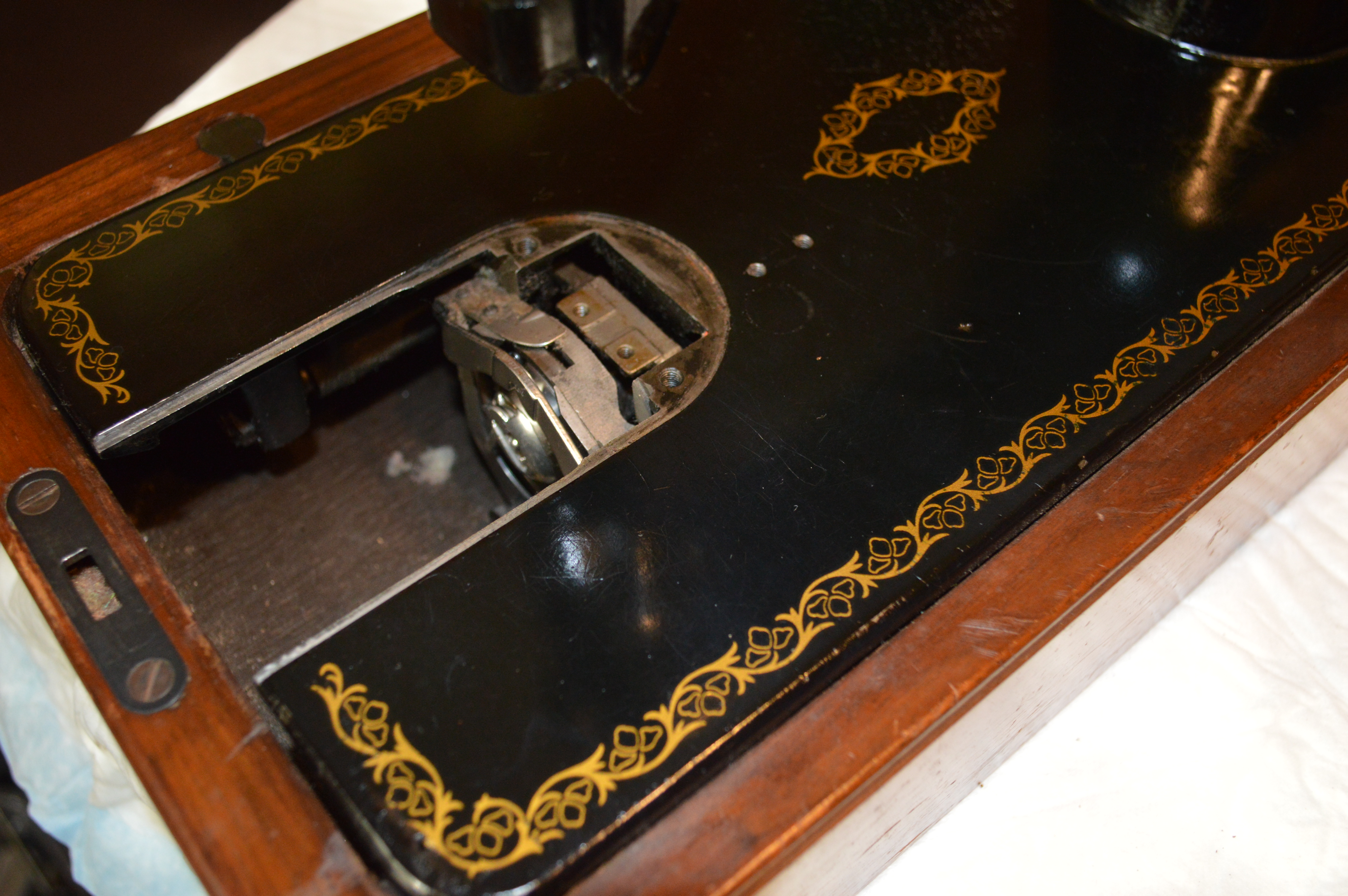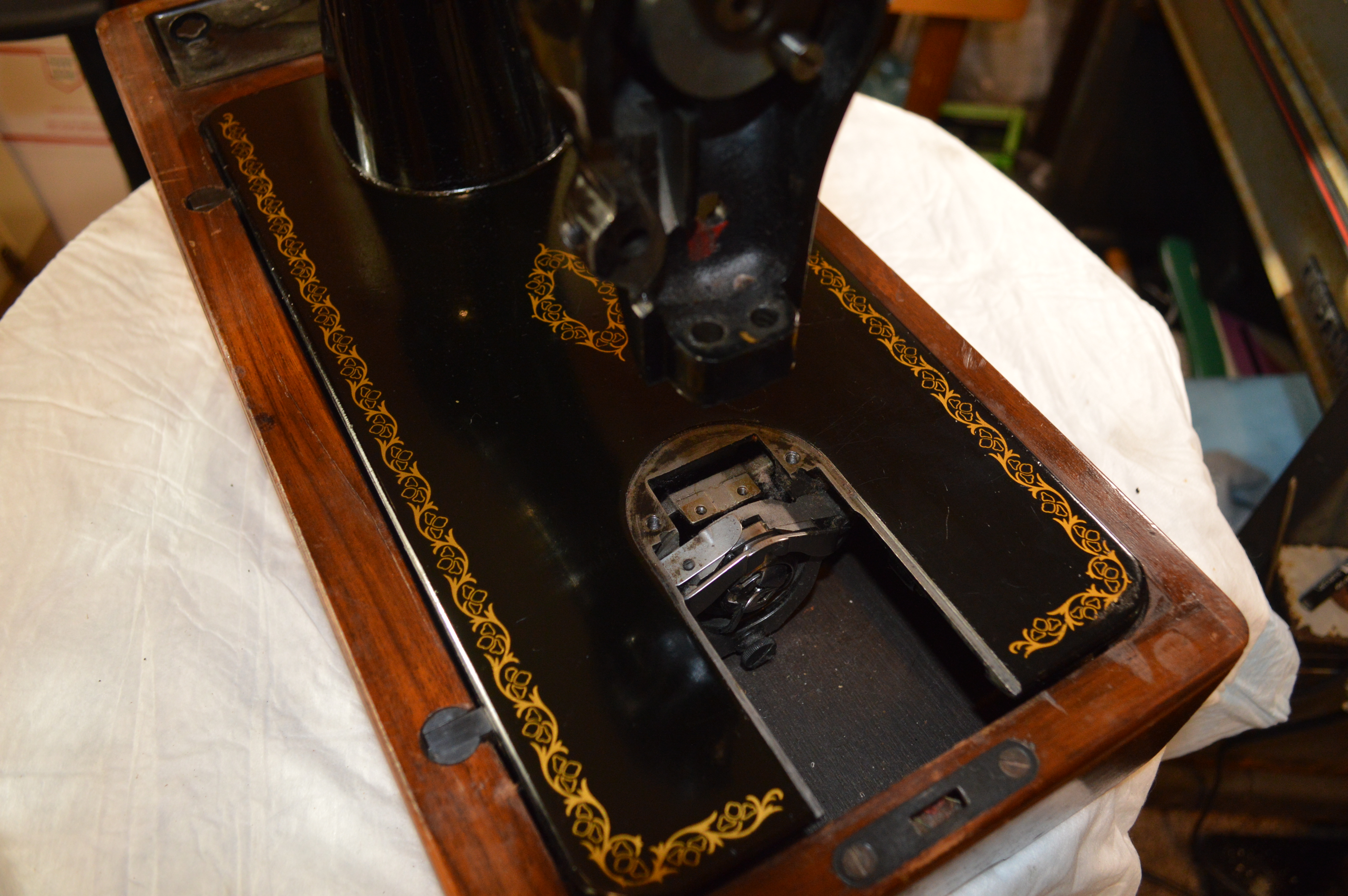 It’s been awhile since I have had the opportunity to revisit this restoration. Aside from being busy keeping up with other projects and priorities, I finally had a chance to make progress. Now, to be quire honest, I didn’t know how this was going to end… There are many adjustments that were necessary that were never contemplated when the machine was manufactured. The alignment of the sewing arm to the bed is set by dowel pins… they are gone, and the arm was “twisted” and “adjusted” with the aid of a hammer. The gear bushings had to be adjusted to accommodate these changes and the gear lash fit by feel. Remember, these gears are mated at the factory and the tooth to tooth orientation was lapped for smooth running. There is no way of knowing what else is going to pop up and make me groan. I decided to make sure she sewed before spending the hours it will take to cure the cosmetics, even before applying decals…