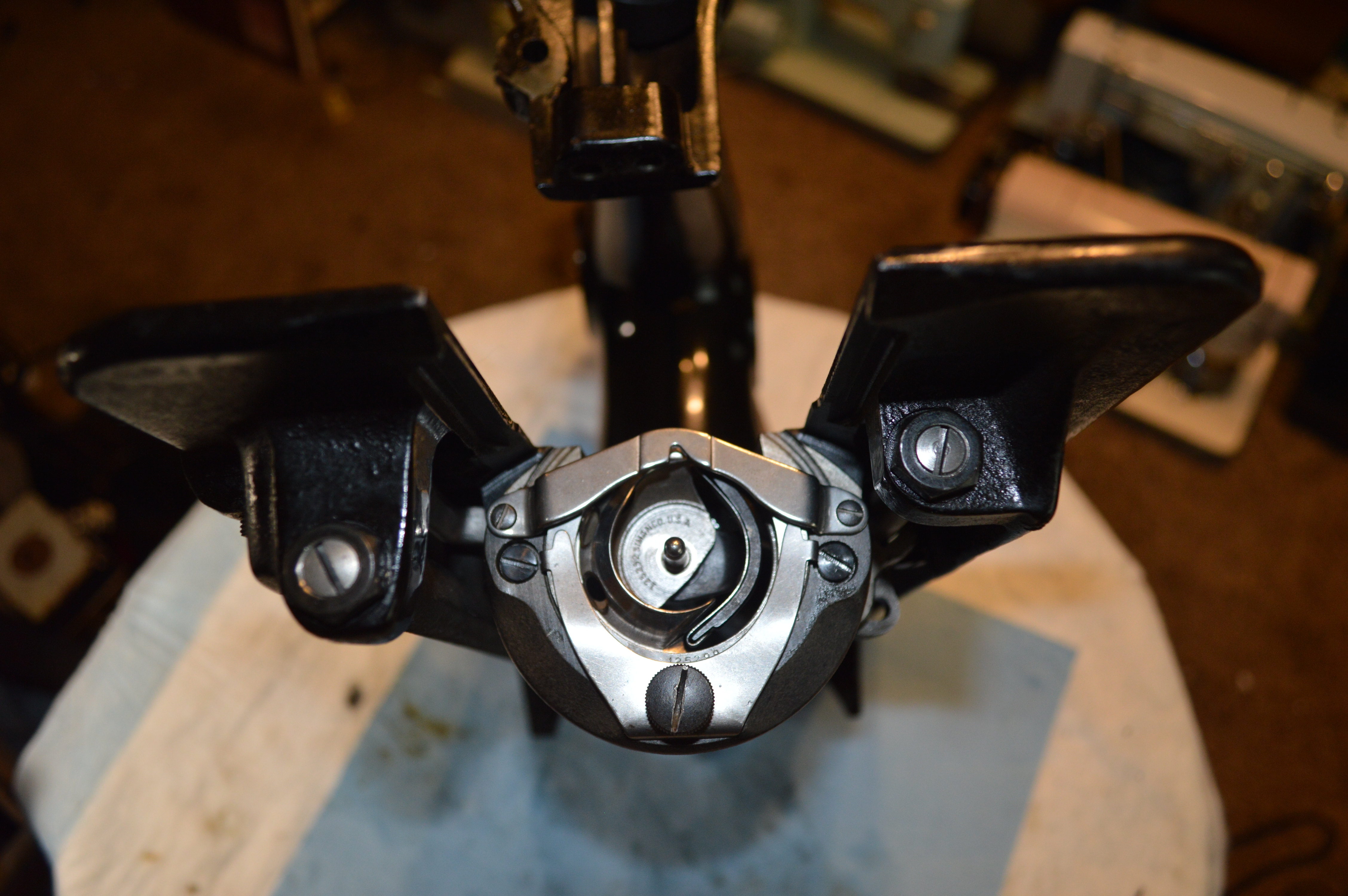 So it looks like the needle is centered in the hole… that’s good. But there are two axis of alignment here, hook timing and hook to needle alignment. We got the side to side, but what about the front to back?