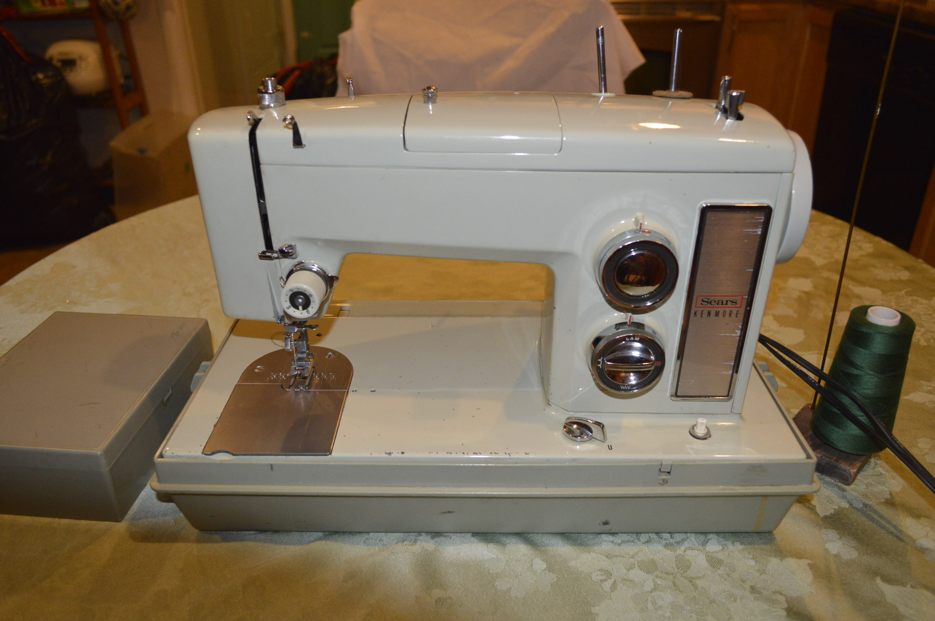 Recently acquired… need to do some more research but this Kenmore was manufactured in 1970-1971. It is an all metal sewing machine that has a side loading class 15 bobbin and an oscillating hook. The machine has 4 built in stitches… straight, ziz-zag, blind hem, and reinforced ziz-zag, It has a front loading bobbin and oscillating hook. A nice (and novel) feature is a needle plate insert that, depending on how it is inserted, is a ziz-zag needle plate on one end or straight stitch needle plate on the other end, without changing the needle plate itself. The machine accepts pattern cams for other decorative and primary stitches. With a 1.2 amp motor and double belt reduction drive mechanism, it is a powerful piercing machine… most Kenmore’s are! Don’t underestimate the vintage Kenmore brand, They were produced by White sewing machine company until 1958. This machine was mad by Maruzen (later renamed Jaguar) and is a high quality machine.