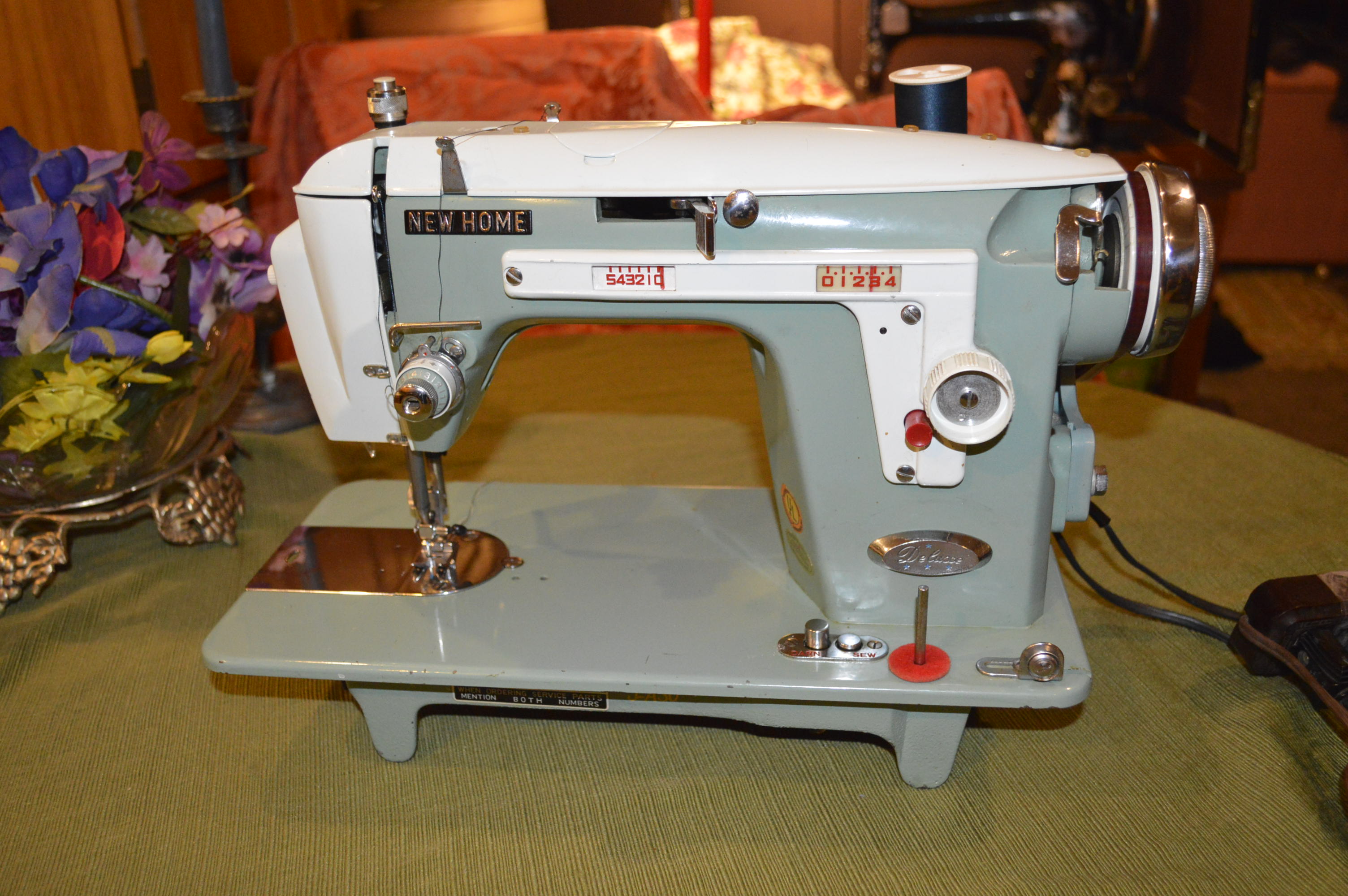 The New Home model 534 Deluxe is a 60’s vintage all metal sewing machine manufactured by Janome in Japan. It is a full featured machine that produces a zigzag and straight stitch. The machine is cam compatible and there is a choice of 24 additional decorative stitches. The machine features a side loading class 15 bobbin and ustilizes an oscillating hook mechanism. The machine is a left homing needle only. No other needle position is available. The feed dog drop mechanism is controlled by 2 push buttons located on the bed in front of and to the left of the pillar.