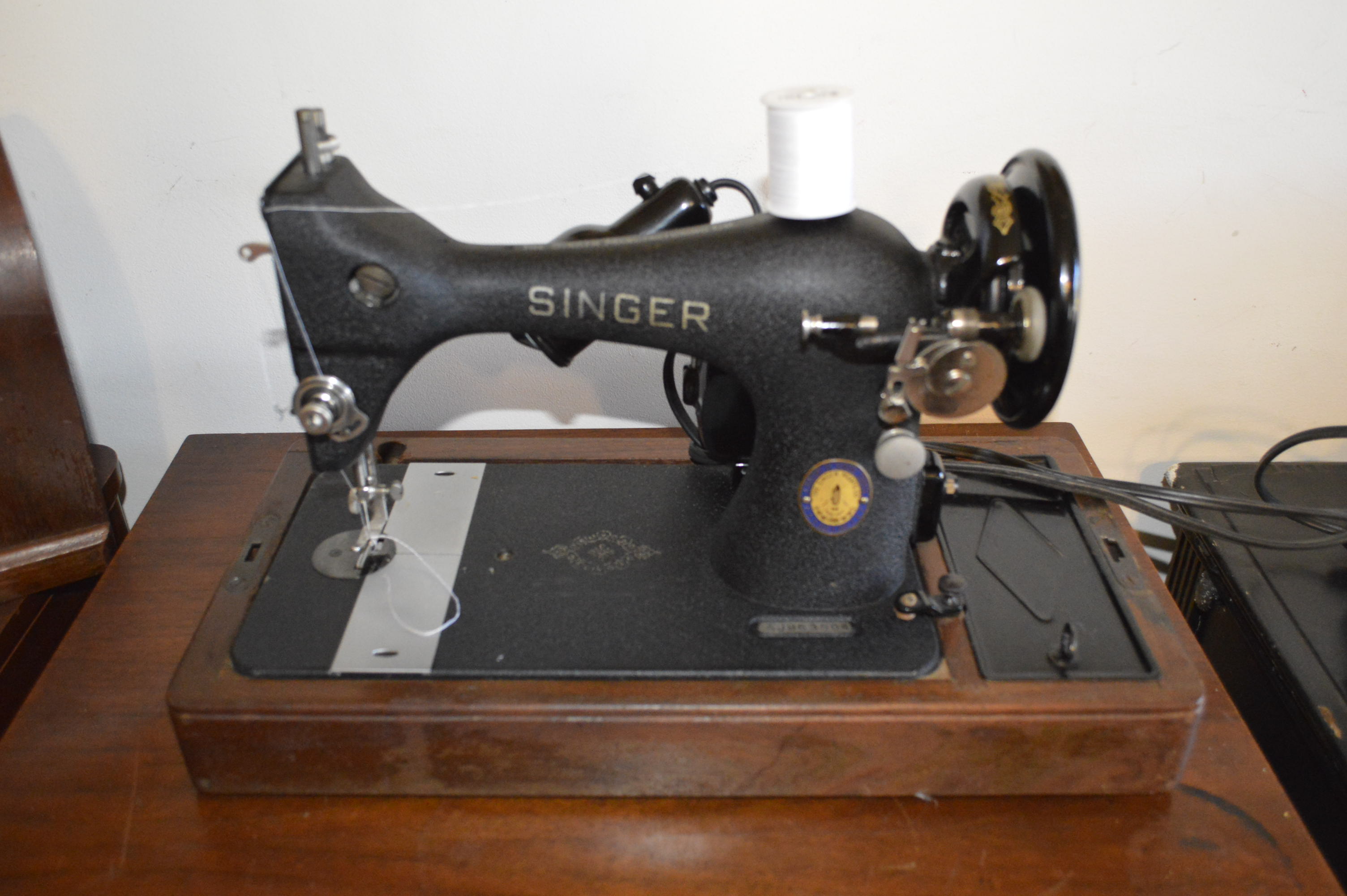 The 128 is a 3/4 size machine to the model 127 which is a full size machine. The only differences I can find on these models is that the 128 has a high mounted bobbin winder, while the bobbin winder The 127 is a low mounted mechanism. In 1912, there were some minor changes to the tension release mechanism.